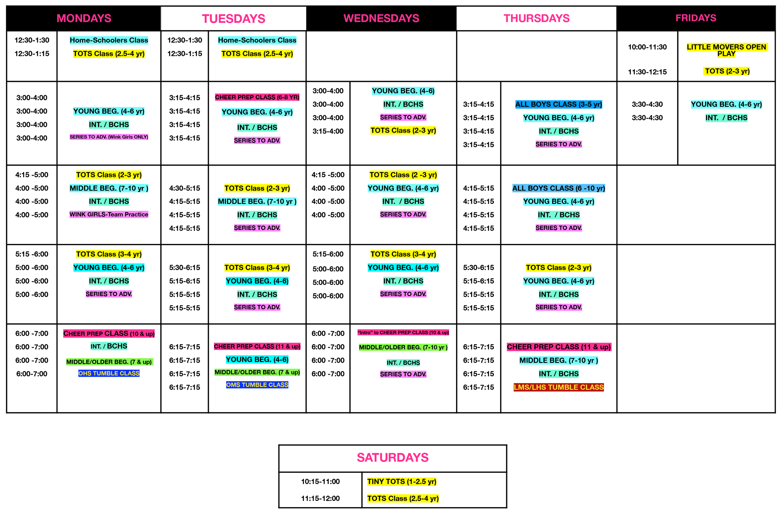 FALL/SPRING Class Schedule starts Aug. 4th and goes through May 23rd